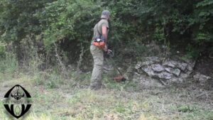 Naughty blonde gets fucked hard in the forest in both holes and cum drips from her tight asshole